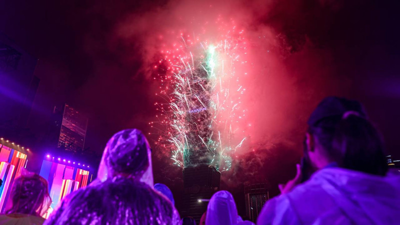 Tayvan'ın başkenti Taipei'de halk, yağmura rağmen yılbaşı için bir araya gelip Taipei 101 binasının çevresinde havai fişek gösterilerini izledi.