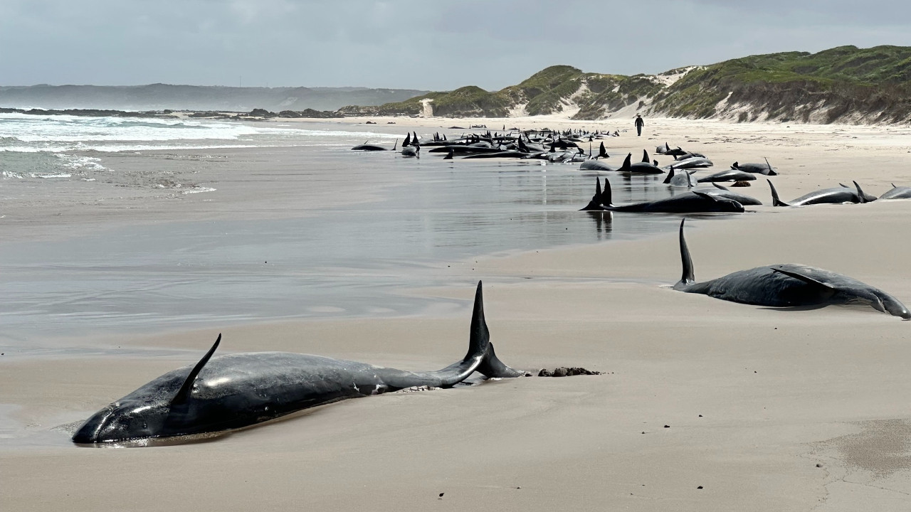 Avustralyalı yetkililer, 150'den fazla sahte katil balinanın Tazmanya eyaletindeki bir sahilde karaya vurduğunu ve kurtarma ekiplerinin hala hayatta olanları kurtarmak için çalıştığını bildirdi.