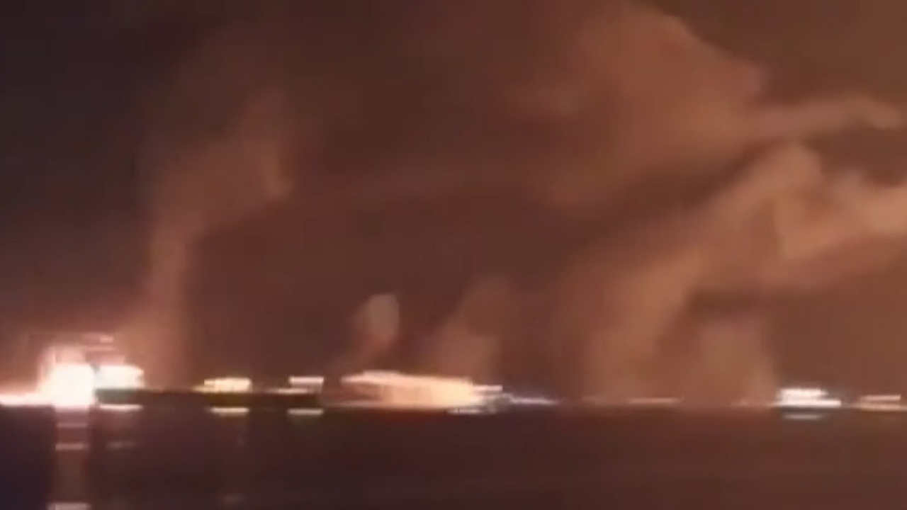 Sivil savunma ekipleri, saldırı sonucu limanda çıkan yangını söndürmek ve yaralıları kurtarmak için çalışmalarını sürdürüyor.