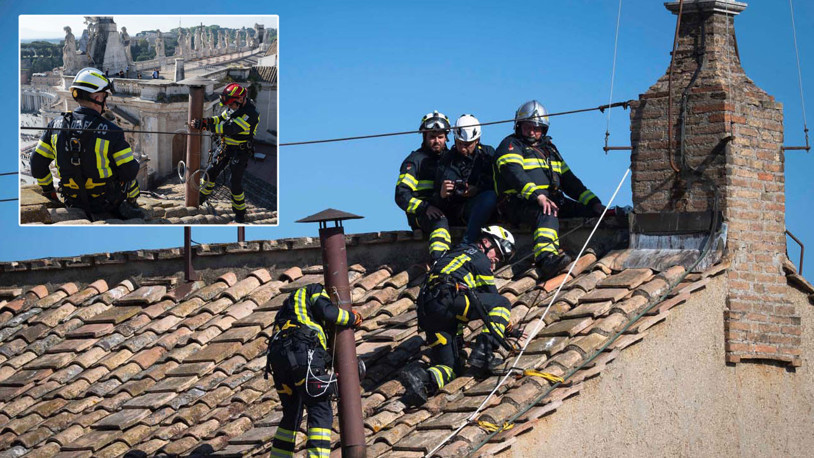 Vatikan itfaiyecileri yaklaşan Konklav için Sistine Şapeli'nin tepesine baca kurdu.