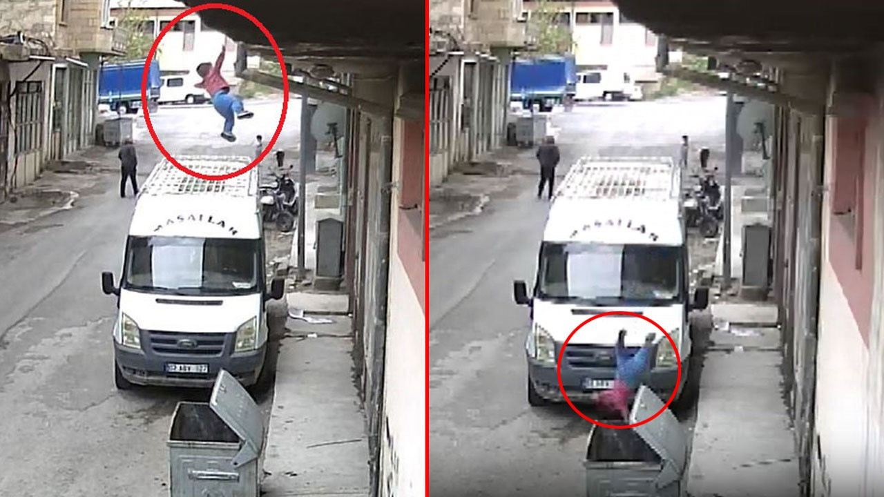 Öte yandan, minik çocuğun evin penceresinde düştüğü anlar ise güvenlik kamerasına yansıdı. Görüntülerde, çocuğun çöp tenekesinin içine düştüğü, çöpün içindeki kedinin panikle dışarı çıktığı anlar yer aldı.