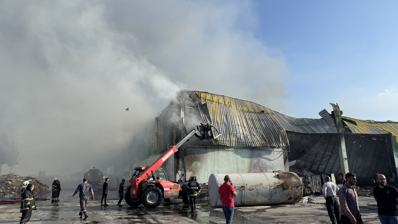 Yenidam Mahallesi'nde bulunan geri dönüşüm tesisinde henüz bilinmeyen nedenle yangın çıktı.