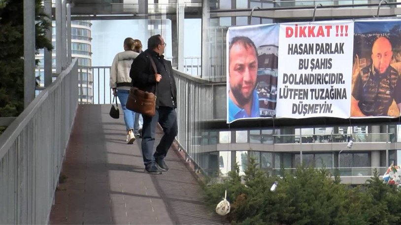 Basın Ekspres Yolu Kuyumcukent Üst geçidine gelen bir kişi, üzerinde 'Dikkat Hasan P., bu şahıs dolandırıcıdır. Lütfen tuzağa düşmeyin' yazılı bir pankart asıp ayrıldı. Sabah saatlerinde Basın Ekspres yolunu kullanan sürücüler pankartı görünce şaşkınlık yaşadı. Üst geçidi kullanan bazı yayalar da üzerinde fotoğraf da bulunan pankarta uzun uzun baktı. Bazı yayalar gülümseyerek pankartın fotoğrafını çekti.
