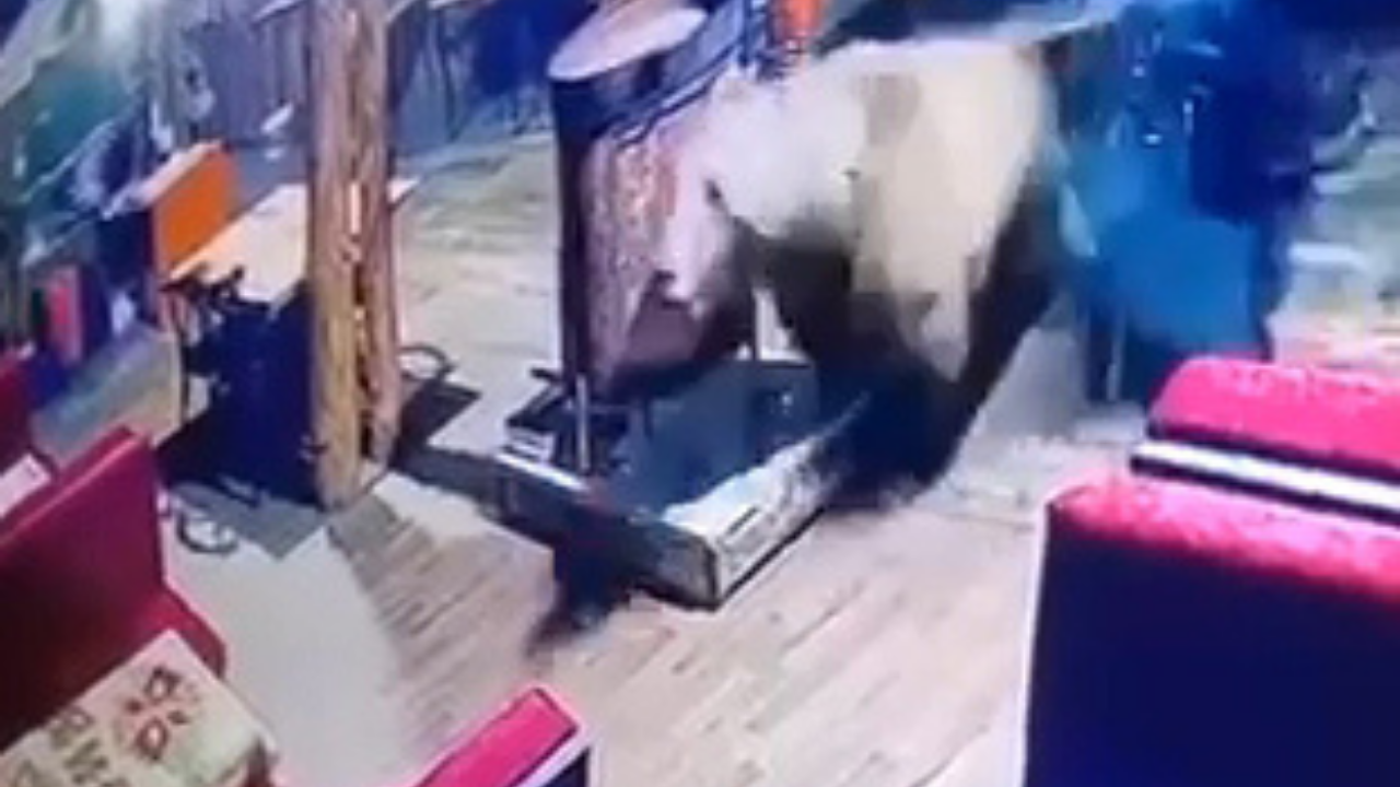 Uludağ’ın Sarıalan bölgesinde akşam saatlerinde, aç kalan ayı, camlarını kırdığı bir restorana girdi. Restorana girdikten sonra masaları deviren ayı, panikleyip hızla kaçtı. O anlar ise iş yerinin güvenlik kamerasına yansıdı. Görüntülerde, ayının koşarak işletmenin camına çarpıp kırarak içeriye girdiği, içeri girmesiyle birlikte masaları devirmeye başlayan ayının panikleyerek hızla işletmeden kaçtığı anlar yer aldı.