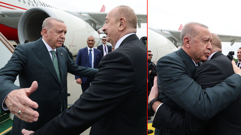 Erdoğan, Azerbaycan Cumhurbaşkanı İlham Aliyev ve Türkiye'nin Bakü Büyükelçisi Birol Akgün tarafından karşılandı.