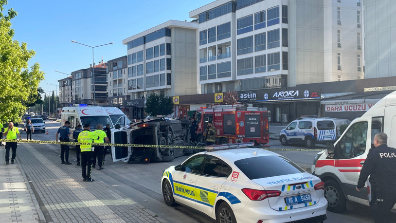 Polis memuru İ.A'nın kullandığı araç, Alemdar Mahallesi 1. Nilüfer Caddesi'nde aydınlatma direğine çarparak devrildi.