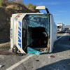 Diyarbakır’a seyir halinde olan A.Z. yönetimindeki Fırat Turizm’e ait 21 ACN 504 plakalı yolcu midibüsü, sürücüsünün direksiyon kontrolünü yitirmesi sonucu devrildi.
