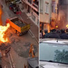 İtfaiye ekipleri yangını söndürürken, polis ekipleri de sokağı araç ve yaya geçişine kapattı.
