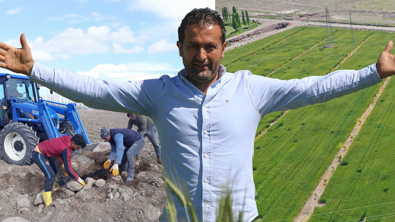 Bölgeden yaklaşık 1500 kamyon taş topladıktan sonra sulama sistemi kurup rüzgar erozyonuna karşı perdeleme oluşturan Sağlam, araziye uygun tritikale bitkisi ekti.