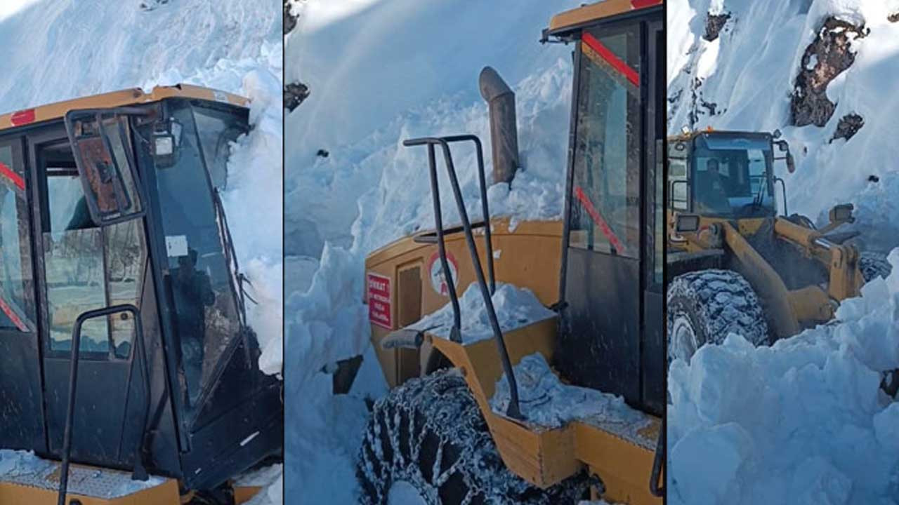 Hakkari'nin Geçitli köyünde karla mücadele çalışmaları sırasında iş makinesinin üzerine çığ düştü. Operatör Mehmet Kılıç, son anda kurtuldu.