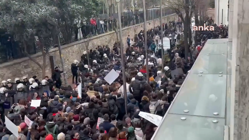 Esnaf Yemekhanesi önünde toplanan öğrenciler, basın açıklaması yapmak üzere üniversitenin Beyazıt Meydanı'ndaki ana kapısı önüne yürümek istedi. Polis ise barikat oluşturarak öğrencilerin yürümesini engelledi. O onlarda polisle öğrenciler karşı karşıya gelirken biber gazı kullanıldı. Polis barikatını aşan öğrenciler, "Faşizme karşı omuz omuza", "Rektör istifa" sloganları atarak yürüyüşlerini gerçekleştirdi.