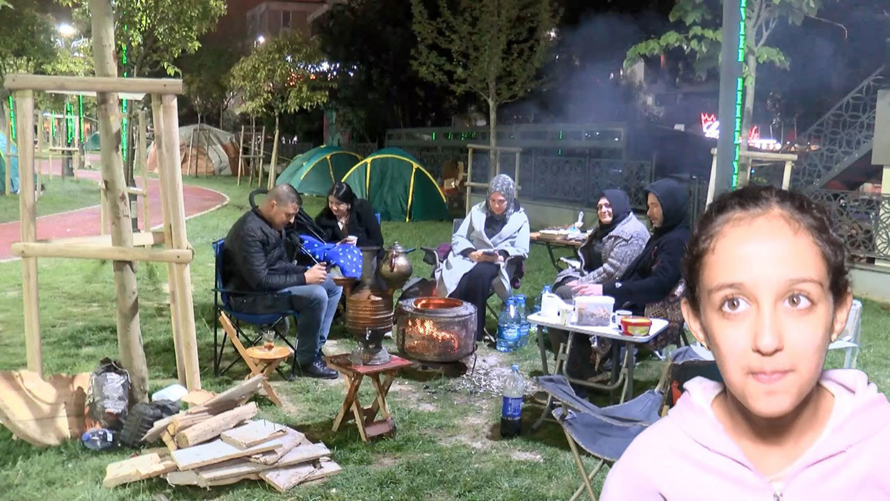 Bahçelievler Yenibosna Kuleli Parkı'nda yakınları ile çadırda kalan Mustafa Karakuş, "Valla tedirginiz. Uzmanlar 48 saatten bahsetti, saatin geçmesini bekliyoruz. O yüzden tedbir amaçlı dışarıdayız. Hem zaten doğayı seviyoruz, kampçıyız. Biraz da zorunlu kamp gibi oldu bizim için. Ateşimizi yaktık, semaverimizi çayımızı demledik, çadırımızı kurduk. Burada şu anda 3 aile var. Yarın mesaisi olan aile içeride uyuyor. Ben esnafım dönüşümlü sabah edeceğiz. Allah milletimize böyle bir şey yaşatmasın. Şükür bu sefer can kaybı olmadı, bu bizim için iyi bir haber. Ama tedbirli olmak lazım" diye konuştu.
