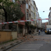 Esenler Fevzi Çakmak Mahallesi 1140. Sokak'ta bulunan 2 katlı binanın ise üst kısmında deprem anında kopan parçalar yola düştü.