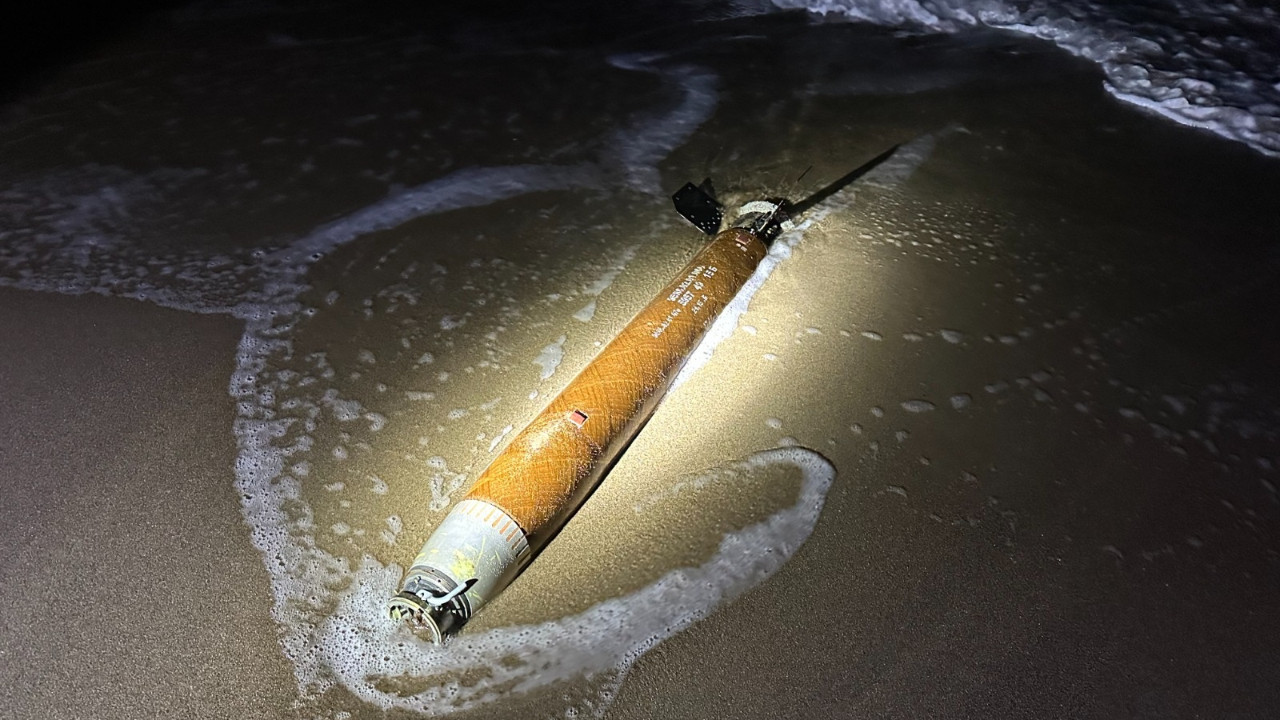 Sakarya'nın Karasu ilçesi sahilinde uçaksavar füzesi roket taşıma motoru bulundu.