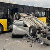 Kazada ters dönen otomobilin sürücüsü Ahmet Ö. ile yanında yolcu olarak bulunan Barış Y. ve otobüste bulunan 7 yolcu olmak üzere toplam 9 kişi yaralandı. İhbar üzerine kaza yerine polis ve sağlık ekipleri sevk edildi. Yaralılar sağlık ekiplerinin ilk müdahalesinin ardından çeşitli hastanelere kaldırıldı.