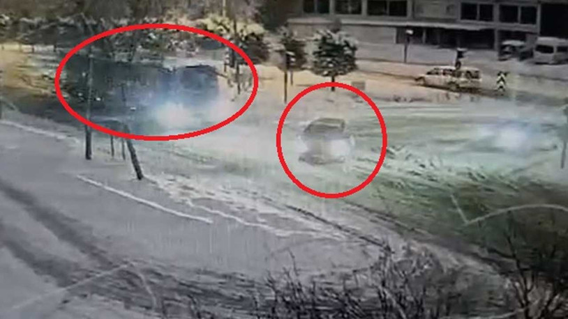 Öte yandan, güvenlik kamerası tarafından da kaydedilen kazada, otobüsün seyir halinde olduğu sırada, kavşaktan ana yola çıkan otomobile çarptığı görüldü.