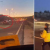 Ters yöne dönen ve aracını görevlilerle diğer araçların üzerine sürerek kaçmaya çalışan şüpheli jandarma ekiplerinin havaya ateş açması ile durdurularak gözaltına alındı. O anlar ise otoyolda bulunan vatandaşlar tarafından cep telefonu kamerasıyla kayıt altına alındı.