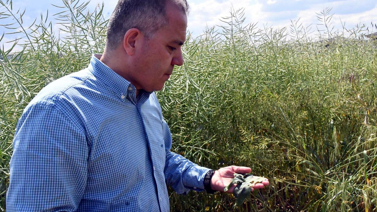 Trakya'da ayçiçeğine alternatif olan çiftçinin 'sarı altın çiçek' olarak adlandırdığı, yeşile bürünen kanola tarlalarında son dönemde sıklıkla görülmeye başlanan tırtıl, tedirginliğe yol açtı. Üretici bir yandan haziran sonu itibarıyla hasat mesaisi için hazırlıklarını sürdürürken, olası tırtıl salgınına karşı da ilaçlama yapmaya başladı. Tekirdağ NKÜ Ziraat Fakültesi Bitki Koruma Bölümü Öğretim Üyesi Prof. Dr. Özgür Sağlam, kanolalarda görülen tırtılın 'lahana yaprak güvesi' olarak bilinen tür olduğunu söyledi. Prof. Dr. Sağlam, "Kanolalarda şu anda tespit edilen ve görülen tırtıl türü lahana yaprak güvesi ya da lahana güvesi olarak bildiğimiz türdür. Bu lahanagillerde dönemsel olarak karşılaşılabildiğimiz tırtıllardan bir tanesi. Bu tırtıl yaklaşık 20-30 milimetre boyutlarında bir kelebek haline dönmekte. Oldukça küçük bir kelebek ama larva döneminde özellikle kanola yapraklarını yiyerek fotosentez anlamında bitkinin araçlarını etkisiz hale getirmekte, yaprakları yendiği zaman da bitki yeterli besini depolayamayabilmekte. Bu da ürün kaybına neden olabilmekte" dedi.