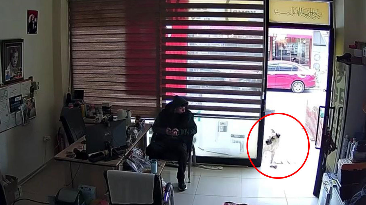 Dükkanın güvenlik kamerasına yansıyan görüntülerde, sokak köpeğinin ağızındaki tavuk budunu dükkanın kapısına bırakıp gittiği, Satır’ın ise oturduğu yerden kalkarak kapıya yöneldiği anlar yer aldı.