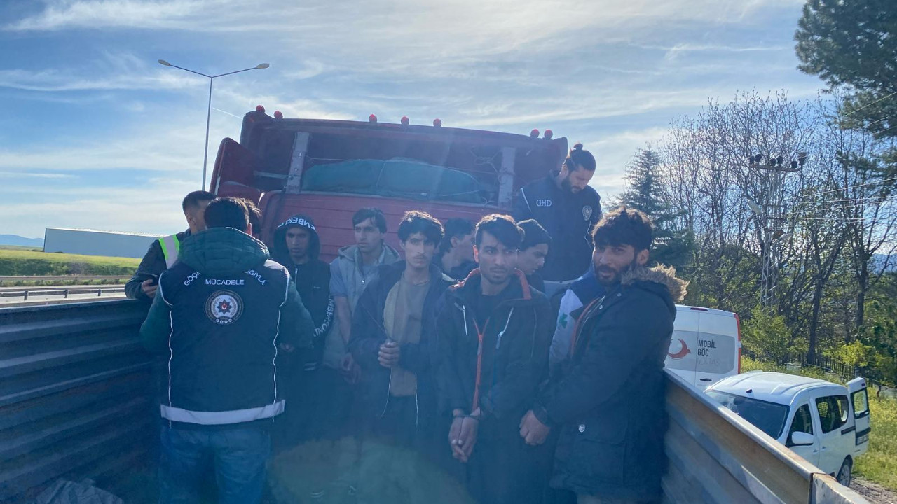 Kontrolde, TIR'ın dorsesinde üzerleri brandayla örtülü, etrafı kalaslarla kapatılmış yaşları 18 ile 30 arasında değişen 7 Afganistan uyruklu ve 3 Pakistan uyruklu olmak üzere toplam 10 kaçak göçmen yakalandı. Organizatör olduğu değerlendirilen TIR sürücüsü Y.Ü. ve yanındaki İ.G. gözaltına alınırken, parmak izleri alınan kaçak göçmenler sınır dışı edilmek üzere Amasya Göç İdaresi Müdürlüğü’ne götürüldü.