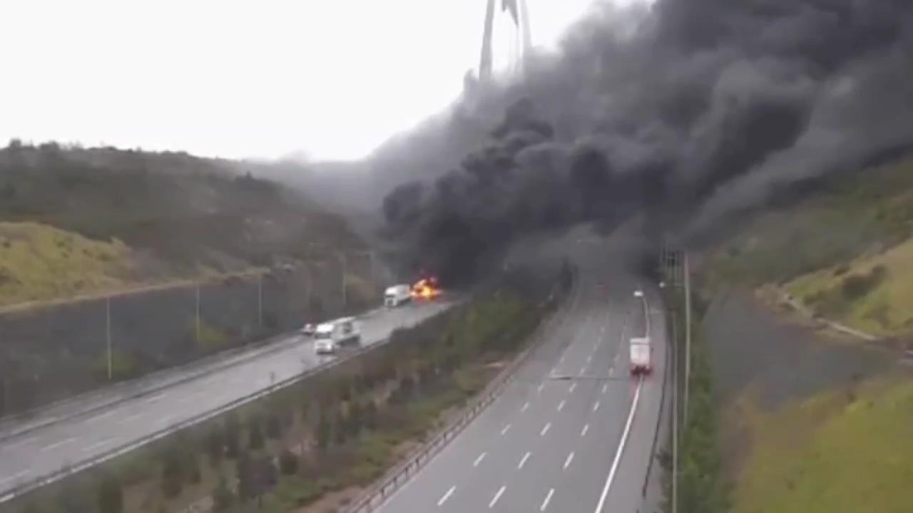 Yangın, Kuzey Marmara Otoyolu Yavuz Sultam Selim köprü çıkışı Edirne istikametinde saat 11.00 sıralarında çıktı. Edinilen bilgiye göre, boncuk polyester plastik ham madde yüklü TIR henüz belirlenemeyen nedenle yanmaya başladı. TIR'dan alevlerin yükseldiğini gören şoför aracı emniyet şeridine çekti. Kısa sürede büyüyen alevler tüm TIR'ı sardı. Haber verilmesi üzerine olay yerine Sarıyer ve Beykoz'dan itfaiye ekipleri sevk edildi. İtfaiye yangına müdahale ederek yangını söndürdü. Yangın nedeniyle Kuzey Marmara Otoyolu Edirne istikametinde trafik bir süre tek şeritten sağlandı. TIR kullanılamaz hale geldi.
