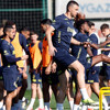 Ardından sahada ısınma, koordinasyon ve çabukluk çalışmaları yapan futbolcular, antrenmanı pas çalışmaları ve dar alanda yapılan çift kale maçlarla noktaladı.